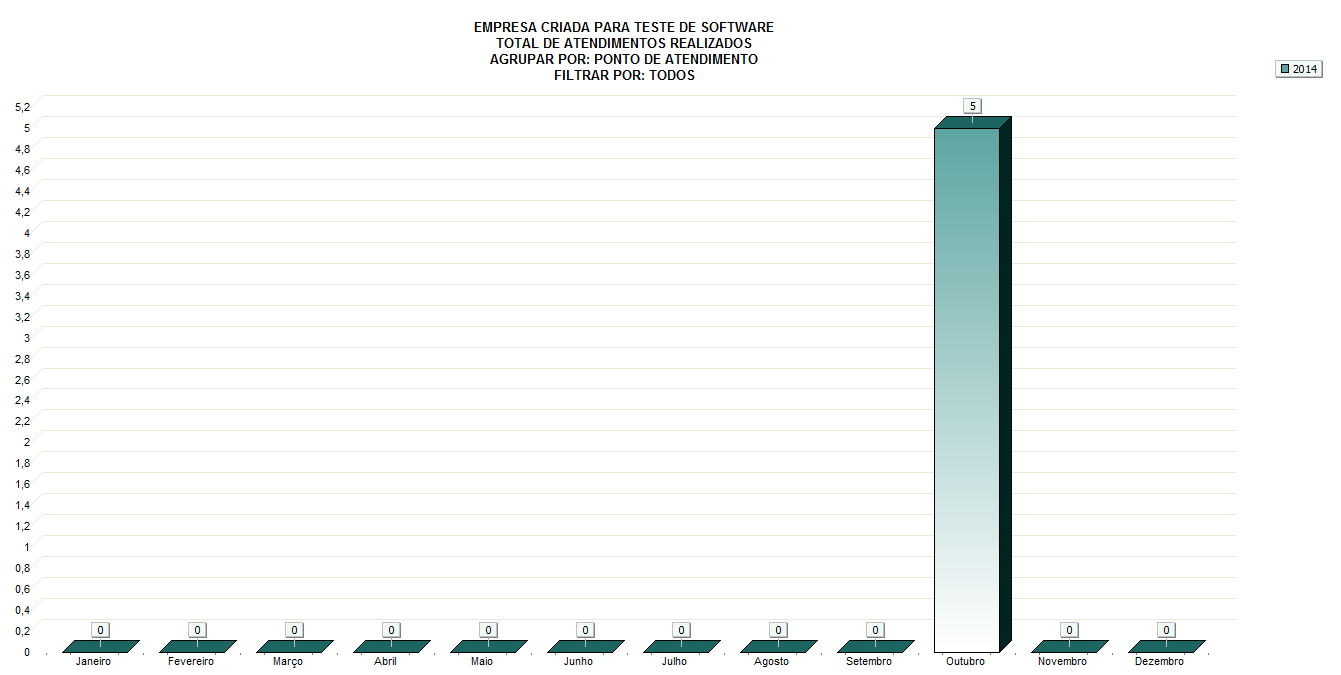 Para gerar o gráfico, o usuário deve selecionar um agrupamento e, opcionalmente, um filtro sobre o agrupamento selecionado. O sistema deve então mostrar uma lista com todos os anos que correspondem à data de cadastro dos atendimentos existentes. O gráfico gerado deve conter uma série para cada ano selecionado.