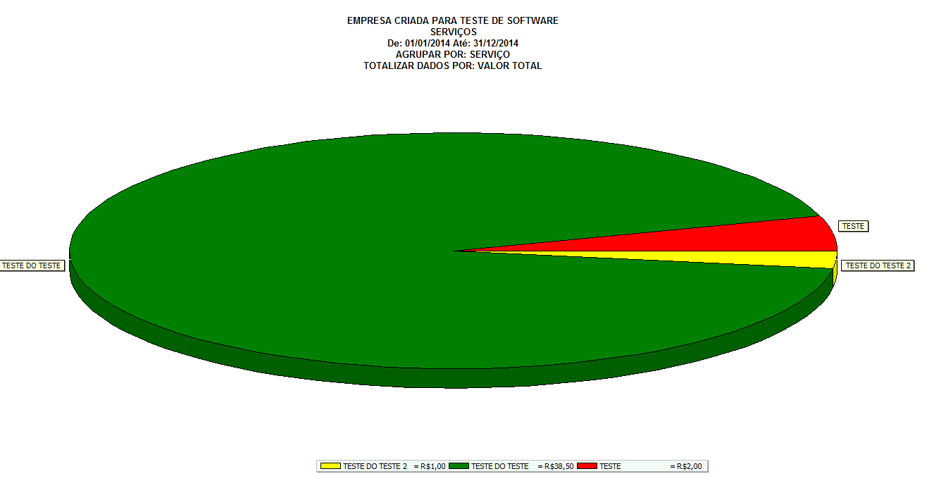 O gráfico de serviços tem por finalidade exibir a quantidade, o valor total ou a contagem dos serviços prestados durante um período para um determinado agrupamento.