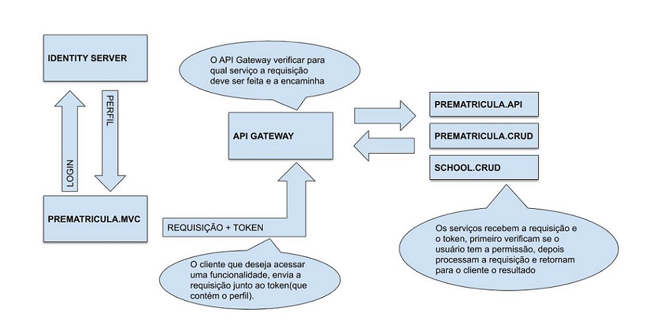 O API Gateway irá centralizar todas as URLs de todos os serviços, com isso, sempre que formos utilizar alguma serviço, usaremos a URL do api gateway, e caso seja necessário atualizar alguma URL, somente será necessário fazer isso em um local.
